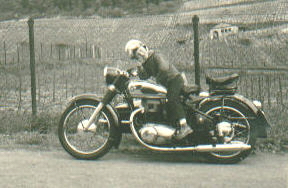 links 1955 auf Horex Regina 350ccm, nur die Beine sind noch zu kurz. rechts 1962 auf Horex Imperator 450ccm im Muensterland beim Bauer auf dem Stoppelfeld klappt schon ganz gut. |