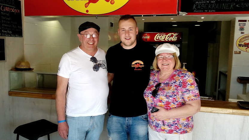 | Der Trödeltrupp, Otto und Harry | Barbara und Harry im "CRAZY CURRY Wurst Haus, El Arenal bei Patrick" |